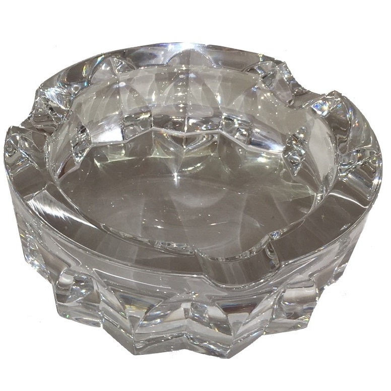 Ce Cendrier rond biseauté en Cristal est taillé et poli à la main en France par des artisans utilisant des méthodes ancestrales.